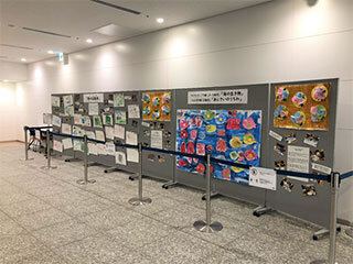 さっぽろ創世スクエア地下1階エレベーターホール前ではこどもカンパニー大通園の園児さんが製作された夏の作品を展示しています。